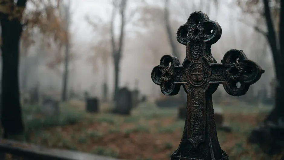 Als ich 2020 dort den historischen Friedhof dokumentierte, fiel mir sofort ein großes Kreuz aus schwerem Metall auf. Es war verwittert, vom Rost gezeichnet, doch es strahlte eine Schwere aus, die mich innehalten ließ. Und tatsächlich: Wer die Schrift entziffert, blickt direkt in einen Kriminalfall aus dem Jahr 1850.